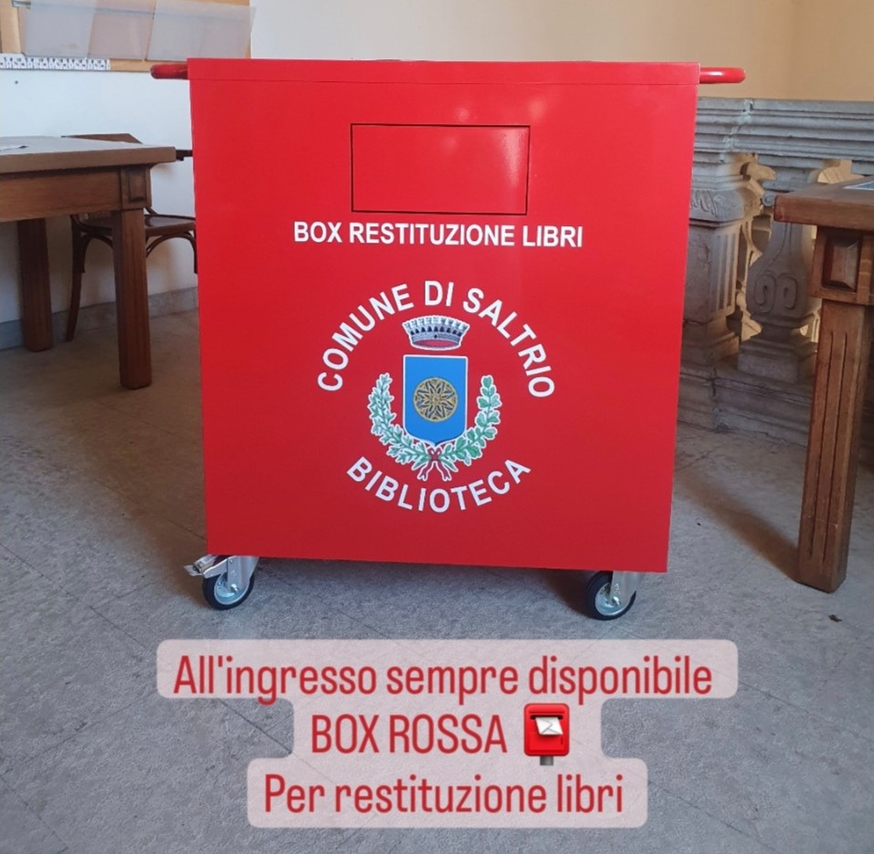 E' inoltre sempre possibile - anche quando la biblioteca è chiusa - lasciare i propri resi nel BOX RESTITUZIONE LIBRI, che si trova nell'atrio della biblioteca, in cima alle scale.